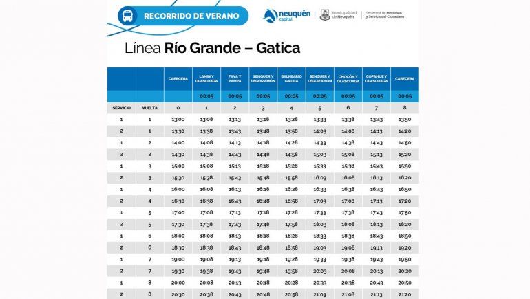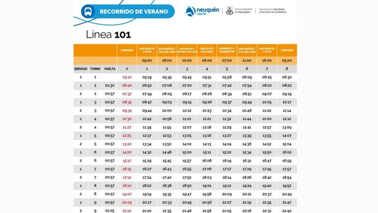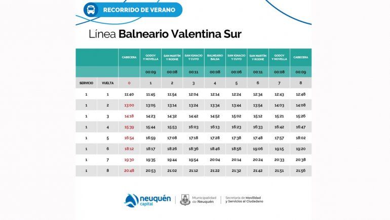 El recorrido de este nuevo servicio que presenta el municipio neuquino partirá de Pérez Novella y Necochea, bajará por calle Belgrano, tomará Rodhe y entrará al barrio Valentina Sur y seguirá al balneario por calle Esquel.