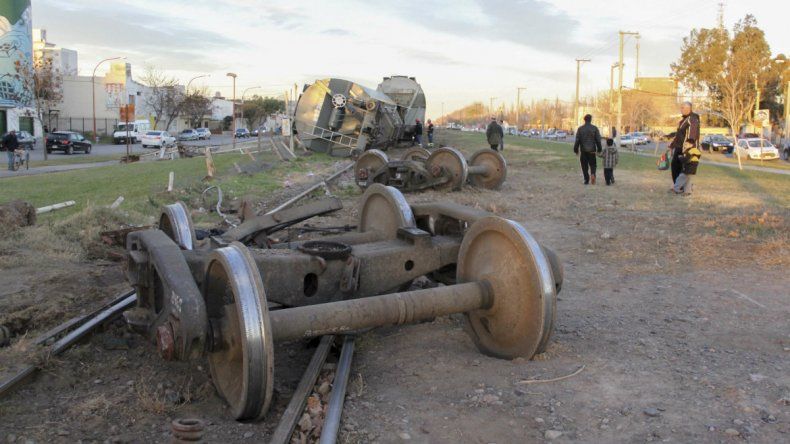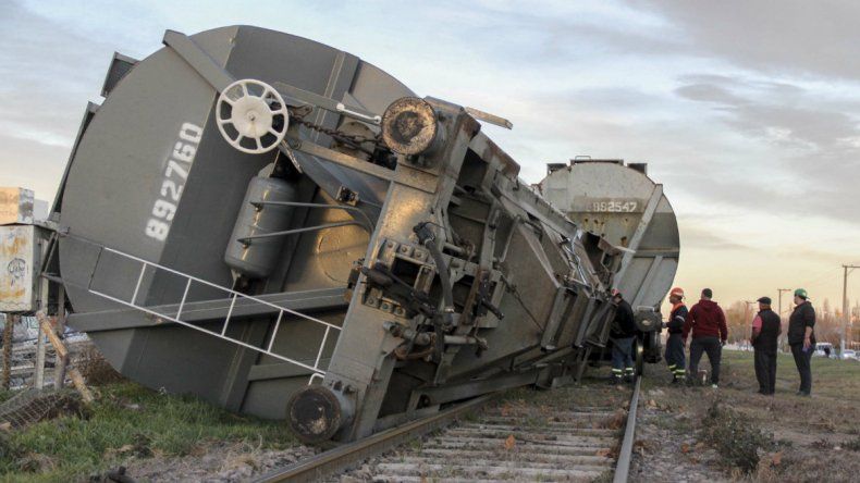 El último vagón de un tren de cargas descarriló y volcó esta tarde en su paso por la localidad de Cipolletti, a la altura del tanque de agua de barrio San Pablo.