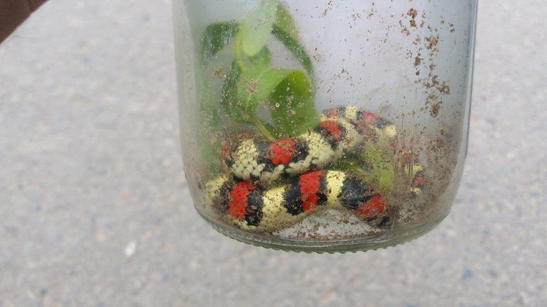 Lo primero que hicieron fue atraparla dentro de una botella de vidrio, y luego supieron que se trataba de una "falsa coral", es decir que no es venenosa ni causa ningún peligro.