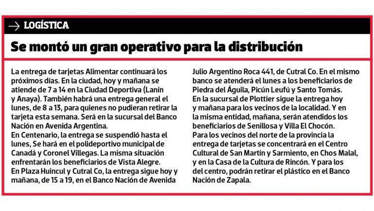 El gobernador Omar Gutiérrez expuso la existencia de este tipo de promociones en el acto oficial de entrega de tarjetas del plan Argentina contra el Hambre en la ciudad de Neuquén. En Neuquén son 16.300 beneficiarios.
