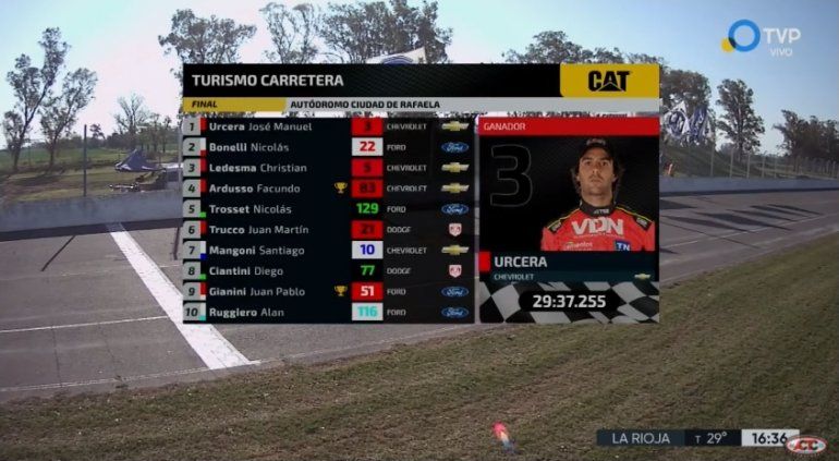 Esta victoria, coloca a Urcera entre los principales candidatos a meterse entre los tres de último minuto de la Copa de Oro y pelear por el título. El corredor ya había ganado en el autódromo de Buenos Aires, pero luego no logró ser regular y se alejó de los puestos de vanguardia.
