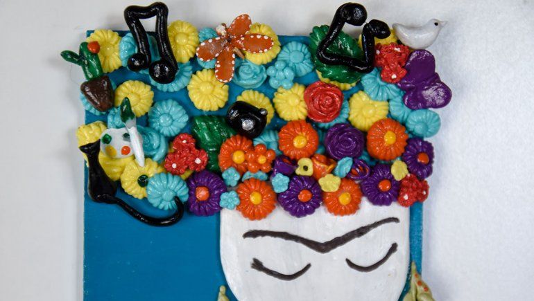“Una señora de Bariloche, amiga de mi mamá, me enseñó la técnica, y como a mí me gusta mucho la producción artesanal, decidí encarar el tejido”, comenta sobre los inicios. Esto fue en noviembre de 2019, había estado un mes postrada en la cama y cuando por fin pudo reincorporarse y acostumbrarse a estar en la silla, aprovechó sus manos sanas para hilar. “Trabajo por encargue, aún no puedo armarme de un stock pero es la idea. Así puedo feriar en el futuro y participar de la comunidad feriante”, comenta sobre su trabajo. Mafaldas, Abuelas y Madres de Plaza de Mayo, duendas, haditas, Fridas e inclusivas, en sus más alegres colores y diversidades, son las muñecas en las que ha trabajado durante año y pico. “Hago mujeres porque me las piden, pero también porque quiero”, ríe con seguridad, “por todo lo que representa nuestra lucha”, afirma. El stock se completa de cuadritos vivientes: armazones en madera con muñecas de vellón en el interior.