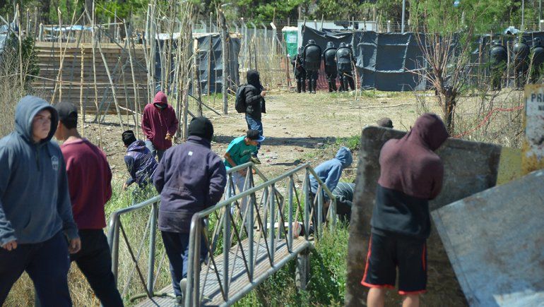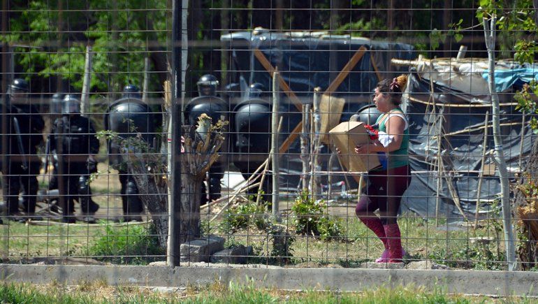Al mediodía, las Fuerzas de Seguridad habían avanzado con los camiones sobre la toma y habían destruido casi la totalidad de las precarias viviendas. Habían formado un cordón desde el que disparaban balas de goma y gases lacrimógenos a los vecinos, quienes se defendían con gomeras. Alrededor de las 14, los policías retrocedieron y la gente se volvió a ubicar en el lugar.