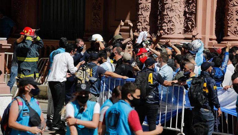 En medio de las escenas de tensión y tras el ingreso sin control a Casa Rosada, se decidió retirar el féretro de Diego Armando Maradona del salón donde se realizaba el velatorio y se cortó el ingreso a la sede gubernamental.