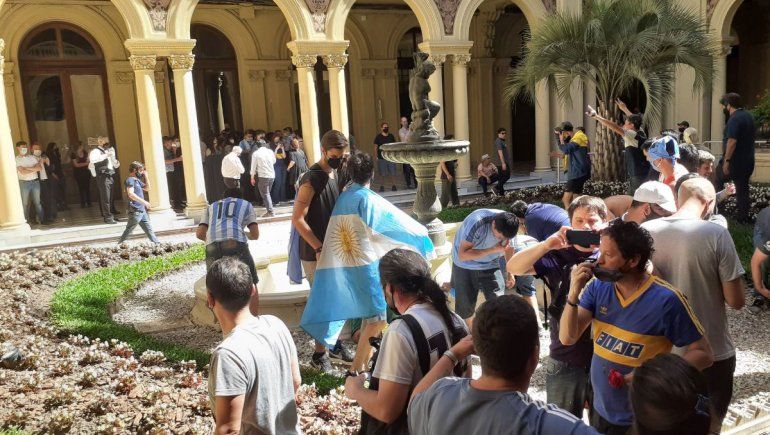 Numerosos hinchas accedieron a lugares de la Casa de Gobierno que estaban restringidos al público e inclusive algunos se refrescaron en las fuentes del patio interno.