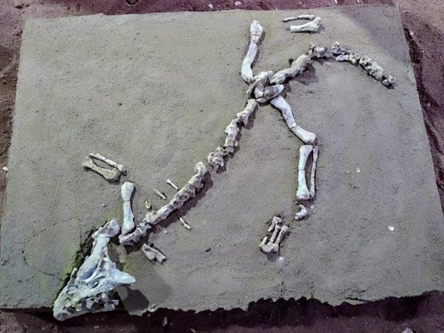 Los restos del ejemplar que analizó el joven estudiante se hallaron en 1999, con la coordinación de Calvo. Los extrajeron del lugar donde hoy está el nodo vial por el que se accede a la ciudad desde la Ruta 7.