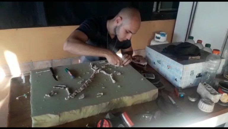 Hace dos años, Emmanuel empezó a colaborar en el Proyecto Dino como técnico paleontológico y, entre otras tareas, le asignaron la limpieza y estudio del Notosuchus. Gracias a ese trabajo, Calvo lo convocó para que presente los resultados en las “34° Jornadas de Paleontología de Vertebrados”, que se realizaron de manera virtual del 26 al 28 de mayo.