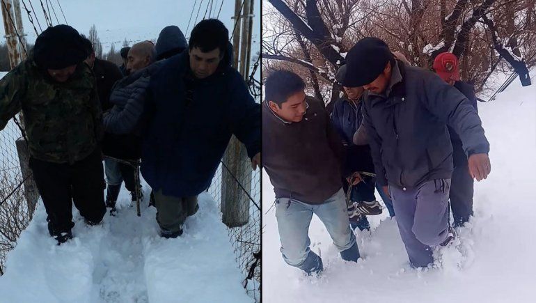 El padre volvió a sentirse mal y el encierro lo estaba agobiando. La familia comenzó a desesperarse y a buscar una salida. "En un momento comencé a moverme, agarré señal y llamé a mi hermano que vive en Las Lajas. Intentó ir al cuartel de Bomberos de Loncopué a pedir ayuda, pero era imposible entrar al paraje así que decidimos sacar a mi papá por la pasarela", contó.