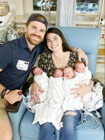 Sin embargo, cuando Maxine fue al médico le confirmaron que se trataba de un embarazo múltiple y que tendría cuatrillizos. Los cuatro bebés nacieron a las 32 semanas, en agosto de este año en Phoenix, Arizona. La pareja debió movilizarse hasta ese otro estado debido a que fue difícil hallar un médico especializado en partos múltiples. Una vez que los pequeños pudieron salir, a fines de agosto, la familia se preparó para volar de vuelta a su hogar en el condado de Berks, Pensilvania. Fueron trasladados en aviones médicos privados para que los recién nacidos pudieran ser internados en la unidad de neonatos del Banner University Medical.
