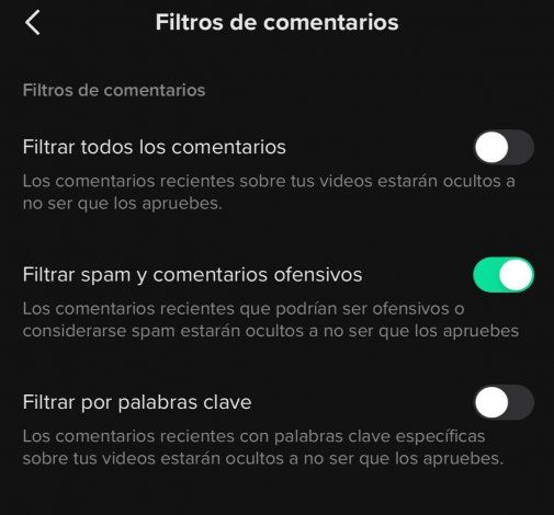 Estas tres funciones de TikTok permiten tener el control total sobre los comentarios que se quieren recibir. Antes, se contaba con opciones de filtrar SPAM y por palabra clave, pero no se podía restringir todos los comentarios por defecto o, por el contrario, aprobarlos manualmente.