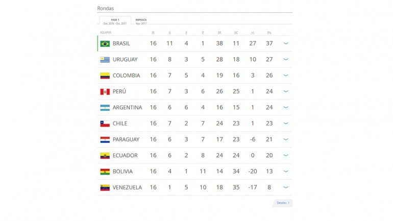 Tal es la paridad, con siete selecciones en siete puntos, que en esta 17ª fecha solo dos podrían clasificarse (Uruguay y Colombia) y solo dos podrían quedar eliminados (Paraguay y Ecuador).