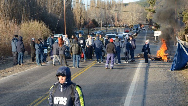 Trabajadores del EPAS agrupados en ATE realizan desde las 8 de hoy un corte total sobre la Ruta 40, a unos cuatro kilómetros de Junín de los Andes, para que el Gobierno cubra las 136 vacantes que quedaron tras jubilaciones en sectores operativos como así también por el pago de bonificación de unos 50 afectados.