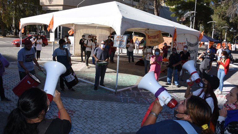 Esta mañana, como parte de las acciones de reclamo, el gremio Siprosapune instaló una carpa en el monumento a San Martín, mientras que los autoconvocados sostienen los piquetes en toda la provincia, algunos con modalidad flexible.
