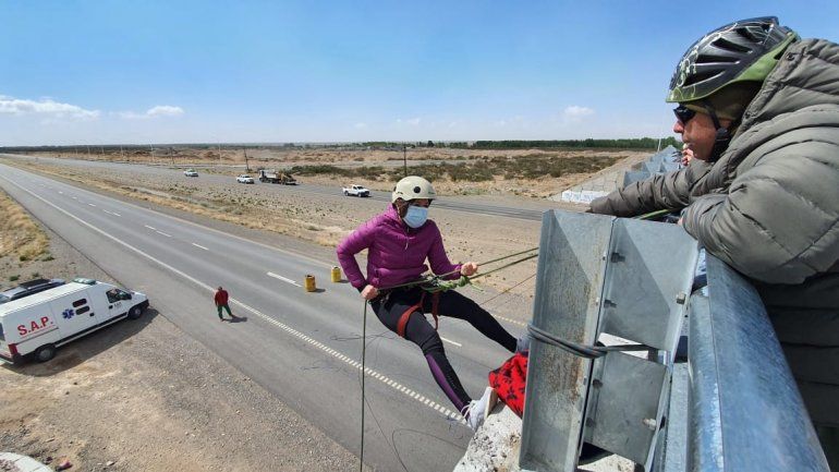 Una imagen diferente se vio esta semana sobre el puente nuevo sobre la Ruta 22 entre Senillosa y Arroyito, cuando 25 personas se arrojaron desde lo alto en rappel. Se trató en realidad de una capacitación que organizó la Municipalidad de Senillosa, con la colaboración de Gendarmería Nacional.