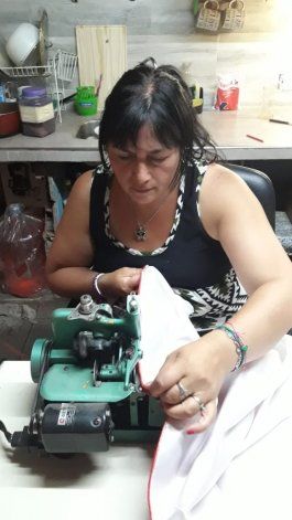 Carmen, otra integrante de la Filial San Martín Leonardo Ponzio (presidida por Eduardo Cifuentes y Daniel Alarcón), está a pocas cuadras. También laburando sin parar y en silencio en su taller de costura. Tiene en sus manos una "enorme" responsabilidad. "Estoy haciendo la bandera más grande que habrá en la Patagonia, de 75 metros de largo y 4,50 de ancho. Los chicos me trajeron la tela a las 7 de la mañana y sigo. Pero no me quejo, esto me encanta, es de lo más lindo que me pasó porque River es mi pasión", comenta esta entusiasta fabricante de ropa y madre de cuatro hijos (Agustina, Enzo, Fernando y Erick)