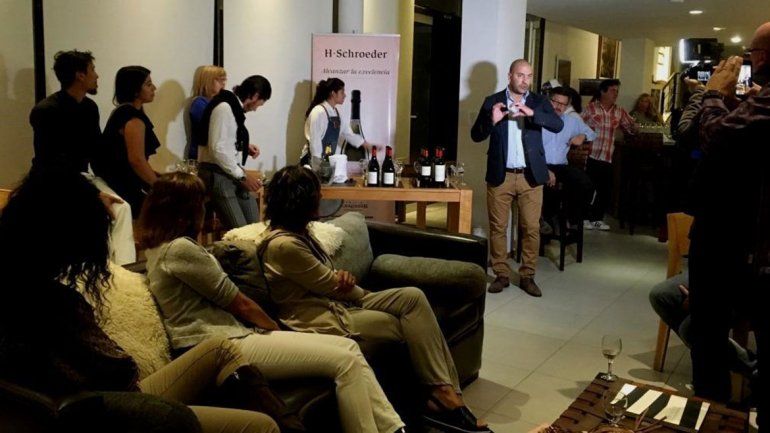Algunas de las más destacadas etiquetas de la Bodega Familia Schroeder como el Saurus Malbec Barrel Fermented, el Saurus Select Pinot Noir o el espumante H.Schroeder acompañaron el menú.