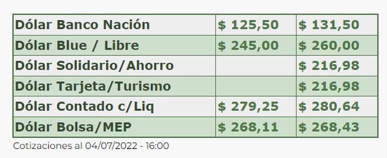En este contexto, en el segmento informal, el denominado dólar "blue" marcó un incremento de 11 pesos, a un promedio de $260 por unidad, tras llegar a tocar un máximo de 290 pesos por unidad.
