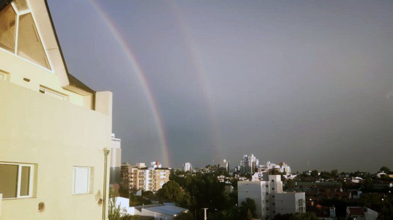 Luego de la tormenta de este domingo, finalmente salió el sol en el Alto Valle y los vecinos pudieron deleitarse -por algunos minutos- con uno de los mejores paisajes: no sólo un arcoíris, sino dos.
