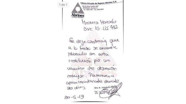 “A la fecha se encuentra internado por un cuadro de depresión mayor. Permanecerá aproximadamente durante 30 días”, indicaba un certificado médico que se viralizó por las redes y los medios de comunicación sobre la situación del ‘Teto’ Medina.
