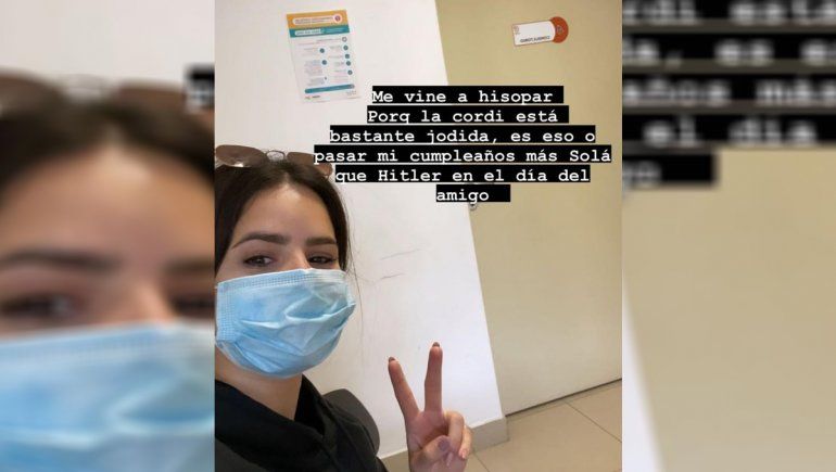 “Me vine a hisopar porque la cordi está jodida. Es eso o pasar mi cumple más sola que Hitler en el día del amigo”, anunció la influencer, mientras se mostraba en un consultorio de la capital neuquina.