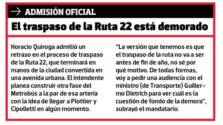 Quiroga confirmó que están precisando los planes para dar una mejor resolución de circulación sobre Dr. Ramón y Ruta 7. Se proyecta un puente sobre Dr. Ramón en la intersección con la Ruta 7 hasta la segunda rotonda cercana al complejo Pirkas. La ruta contará, además, con dos rulos que generarán la interconexión entre el puente y Dr. Ramón.