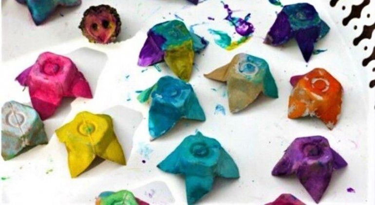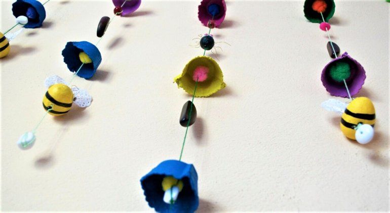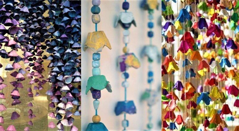 Paso a paso: En primer lugar, vamos a separar todas las “campanitas” del cartón de huevos. Recortamos para que quede lo más prolijo posible. Después de eso, elegimos los colores que va a tener nuestro móvil y comenzamos a pintar las campanitas. Una vez que están secas, vamos a hacerles un agujerito con un punzón o una tijera por el centro de la campanita e iremos pasando el hilo por ahí. Recuerden hacer un nudito al pasar cada campanita porque será el tope.