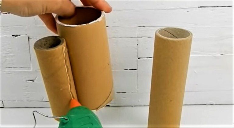 Luego, pegamos los tubitos dándole forma a nuestro organizador. Pueden ir algunos parados y otros acostados. Por último, decoramos con lo que tengamos en casa, pueden ser moños en cinta, lentejuelas, brillo, y todo lo que se te ocurra.