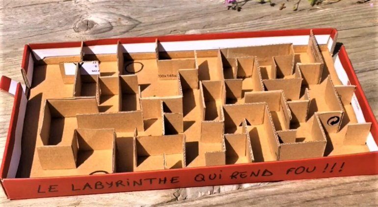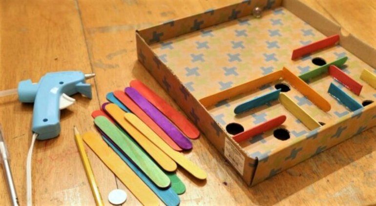 Podemos agregar algún tubito de cartón también. Una vez hecho esto, vamos a decorar la caja a gusto, la podemos pintar, pegarle papeles o lo que se nos ocurra. Por último, pondremos la bolita y trataremos de llegar al otro extremo pasando por todo nuestro laberinto. Y listo, ¡a jugar!