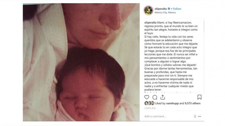 “Mami, si hay reencarnación, regresa pronto, que al mundo le va bien un espíritu tan alegre, honesto e íntegro como el tuyo”, escribió la joven con una tierna foto de su madre en una publicación donde le agradeció por los valores, la educación y la fortaleza que le inculcó durante su vida.
