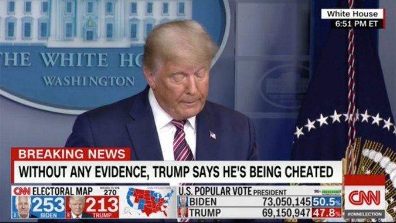 Después de hacer una serie de declaraciones falsas sobre los resultados de las elecciones y el fraude electoral, el Presidente Trump terminó la rueda de prensa en la Casa Blanca sin tomar ninguna pregunta de los periodistas.