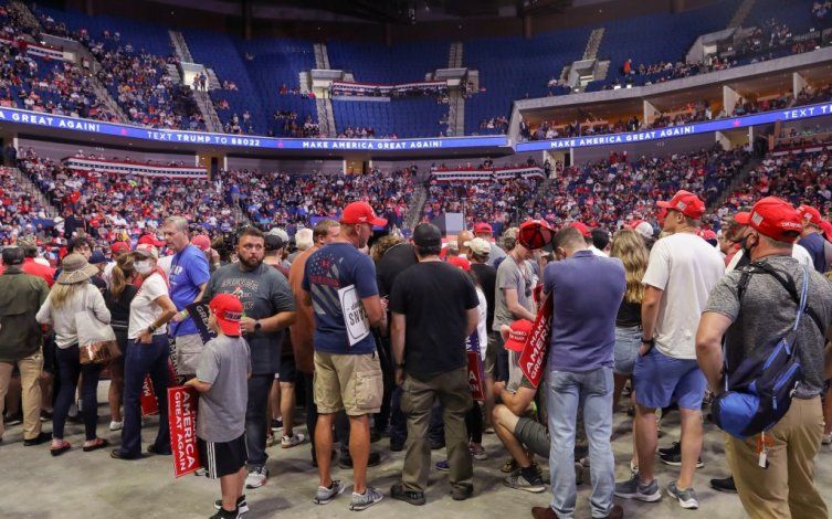 Pese a celebrar que "la mayoría silenciosa es más fuerte que nunca", Trump no logró llenar la arena cerrada en Tulsa, Oklahoma. No obstante, miles de personas, sin barbijos y guantes se apiñaron para entrar y salir, y después estuvieron sentadas, una pegada a la otra.