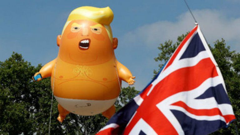 El segundo día de Trump en el Reino Unido será recordado por el té con la reina y por el “baby Trump”, un globo gigante que lo muestra como un bebé gritón. Fue la estrella de las manifestaciones en contra de su visita.
