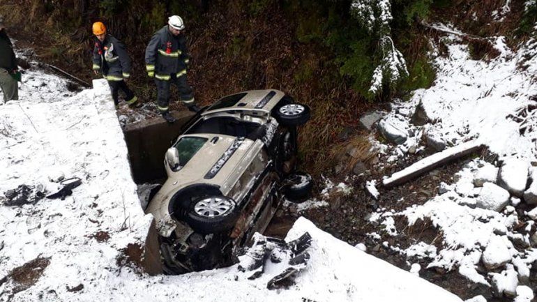 Fuentes policiales indicaron que el conductor de la Renault Kangoo perdió el control por la nieve, lo que provocó que el vehículo se despistara y volcara sobre la profunda banquina.