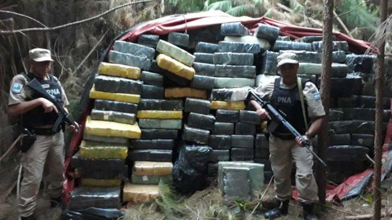 El hallazgo del camión derivó en la realización de un extenso rastrillaje durante el cual se encontraron 9.186 kilos de marihuana fraccionada en 556 bultos, cuyo valor asciende los 356.000 millones de pesos.