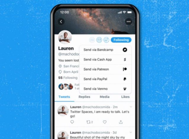 Así luce la nueva herramienta de Twitter, con opciones de pago como Bandcamp, Cash App, Patreon, PayPal y Venmo:
