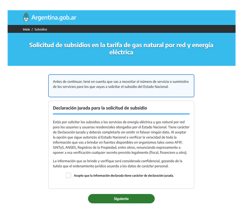 El formulario de segmentación está disponible en la página www.argentina.gob.ar/subsidios y pueden completarlo aquellas personas que representen al grupo familiar, sin importar la terminación del DNI