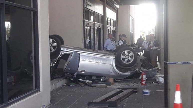 El vehículo estaba estacionado en la dársena de salidas del aeropuerto de Bariloche y al parecer por una falla en la caja automática, se aceleró y cayó por un hueco a la planta baja, por lo que quedó dado vuelta.