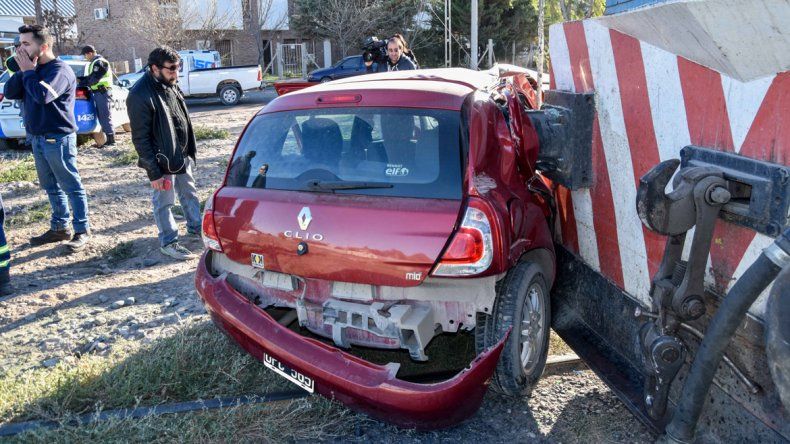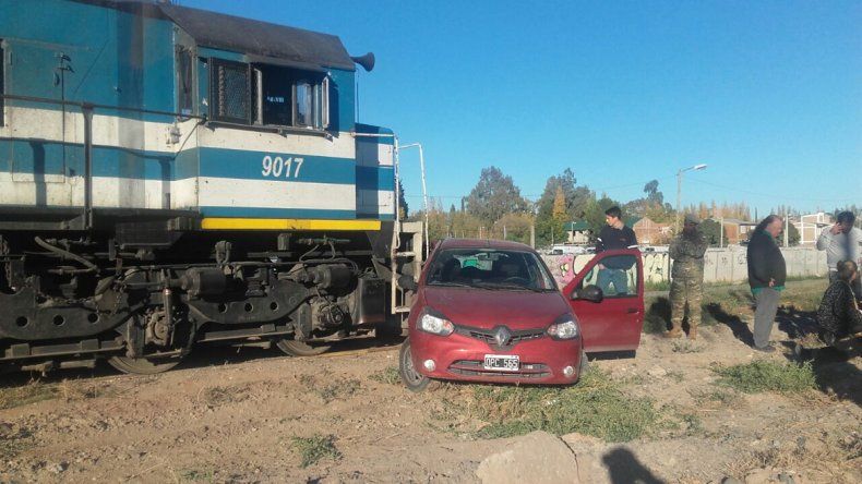 La conductora de un Renault Clio fue trasladada al Hospital Regional Neuquén tras chocar en la calle Saavedra con un tren de cargas de Ferrosur que circulaba en dirección hacia el este de la ciudad.