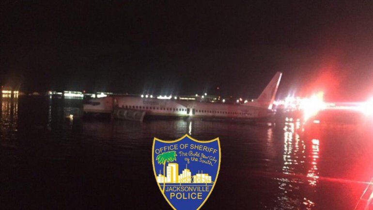 La aeronave, un Boeing 737, se deslizó fuera de la pista hacia el río Sain Johns cerca del aeropuerto naval de Jacksonville, Florida, a las 21.40 (18 hora argentina), cuando se disponía a aterrizar, informó la oficina del sherif del condado.