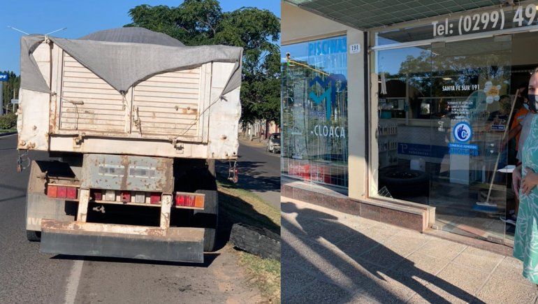 El incidente ocurrió este viernes alrededor de las 18 en dirección a Neuquén. El camión circulaba sobre la Ruta 22 en dirección a Neuquén cuando, por un desperfecto, el neumático se desprendió y rodó hacia la calle Santa Fe Sur, donde se incrustó en el local comercial Instalaciones Patagónicas.