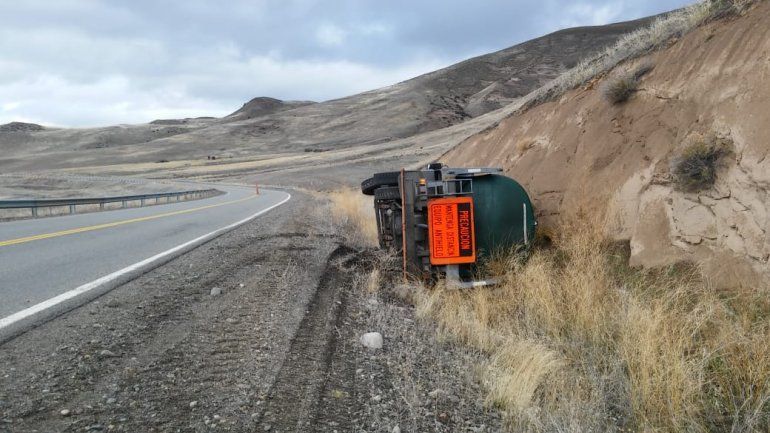 Un camión de Vialidad que transitaba por la Ruta Nacional 40 terminó volcando luego de que al estacionar cediera la banquina por el peso del transporte.