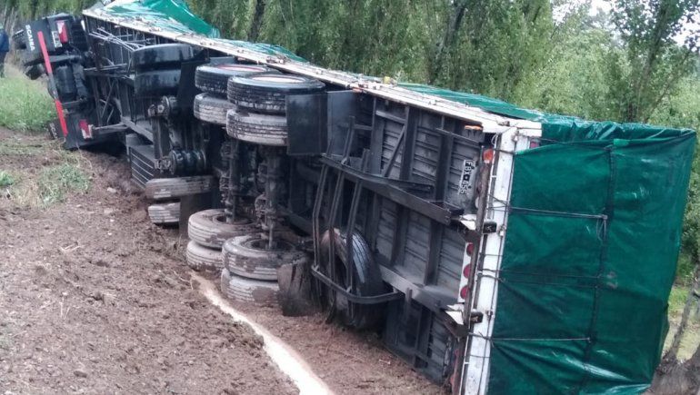 El camionero frenó, perdió el control del rodado y terminó volcando.