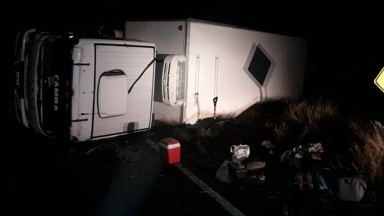 Un camionero se quedó dormido al volante, perdió el control del vehículo y volcó en la Ruta 40, a la altura de Las Coloradas, en la Estancia La Negra. Afortunadamente, no sufrió lesiones y los daños sólo fueron materiales.