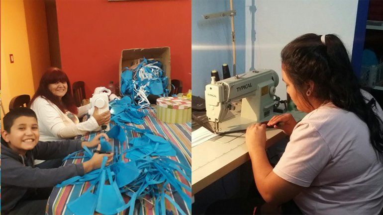 Sobre los materiales, Ana explicó a LMN que recibieron donaciones de telas, pero también usaron los materiales que tenían en sus casas, como así también los que había en el minitalles de costura que tiene instalado el club. “Teníamos personas midiendo la tela y otros cortándola, y los demás cocían”, describió.
