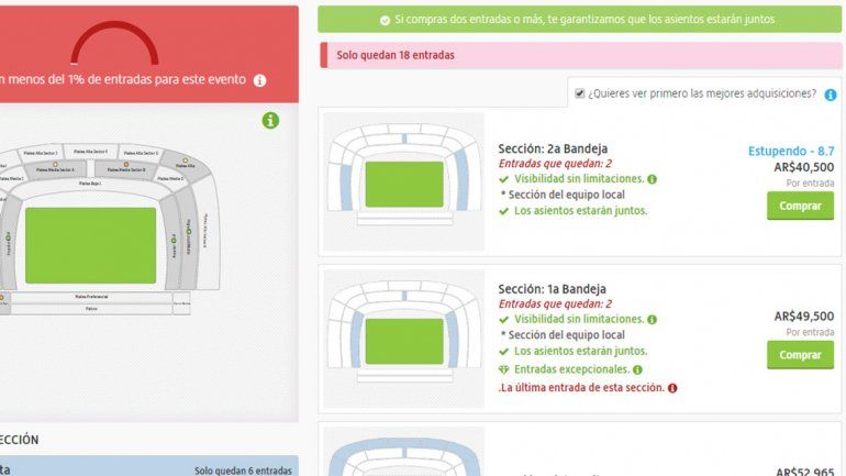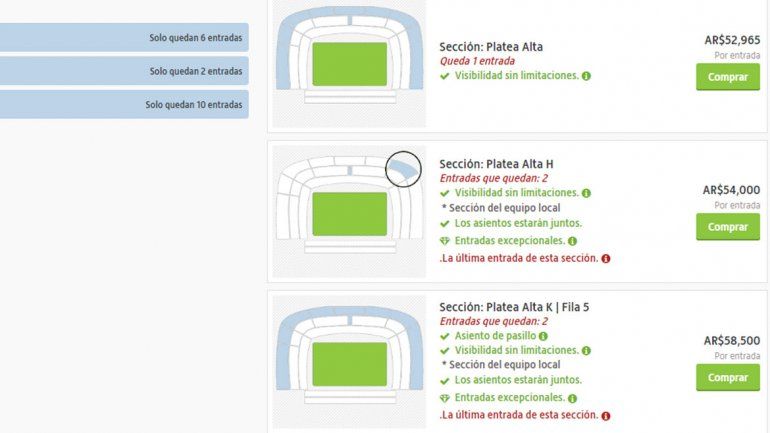 En ese sentido y a pesar de su ilegalidad, el sitio internacional de venta de entradas Viagogo.com publicó precios de la reventa de tickets puestos a disposición por los socios del club de La Ribera.