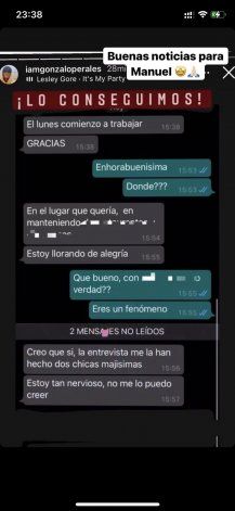 “Estoy tan nervioso, no me lo puedo creer”, le dijo el electricista viral a través de un mensaje a Gonzalo para darle las gracias por su valioso aporte.