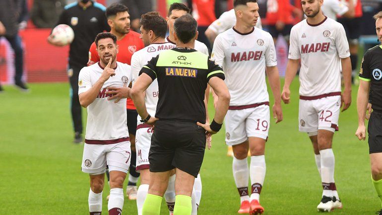 Se le fue encima y su adversario cayó al piso pero Silvio Trucco apenas amonestó al jugador del Diablo. Al final del primer tiempo, todo Lanús se le fue al humo al juez, que ya no iba a cambiar su drástica decisión.