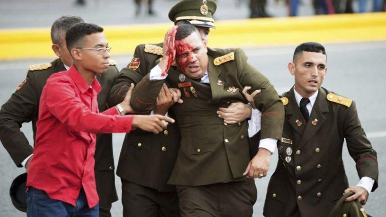 El gobierno venezolano informó que varios drones con cargas explosivas detonaron en las cercanías de la tarima donde Maduro ofrecía su discurso, con resultado de "algunas heridas" para siete militares, a quienes los supuestos responsables del atentado desearon luego su "pronta recuperación".
