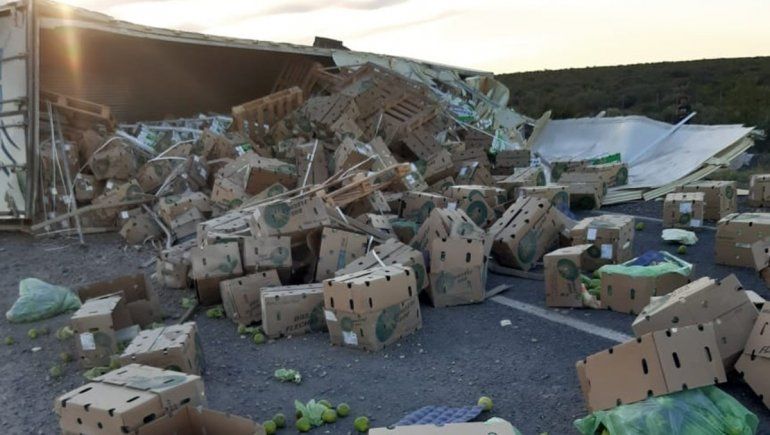Por el impacto, el camión derrapó y volcó a la vera de la Ruta 22. El cargamento quedó sobre la cinta asfáltica.