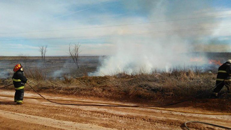 En el lugar trabajaron dotaciones de Bomberos Voluntarios que lograron sofocar el fuego que afectó un par de hectáreas del campo próximo al tendido eléctrico. El viento complicó por momentos la tarea de los socorristas.